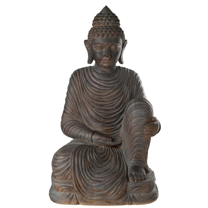 This seated buddha statue, crafted from durable magnesium, is designed for outdoor use, exuding a sense of tranquility and harmony. with its intricate details and raised leg posture, it adds a serene, spiritual touch to your garden or patio, perfect for creating a peaceful meditation corner or enhancing your outdoor decor.